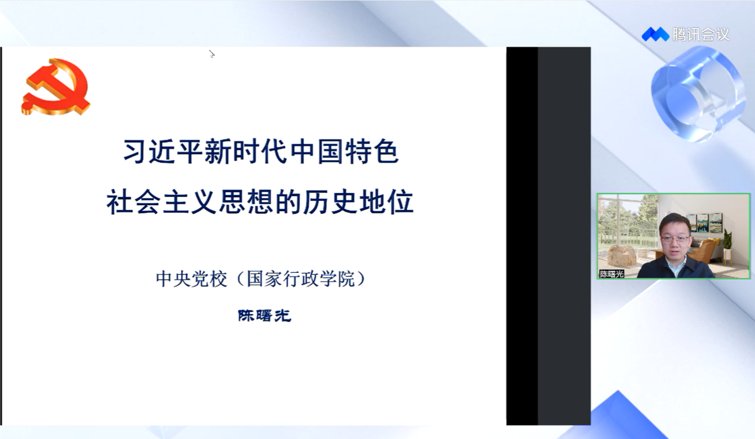 2023年4月22日下午,欧美日一区邀请中共中央党校(国家行政学院)陈曙光教授走进我校思政课课堂,作《习近平新时代中国特色社会主义思想的历史地位》专题报告。报告采取“腾讯会议+直播”的形式进行,我校2021级和2022级本科生、校学生党校“求理”分部暨青年马克思主义研修班学员、马克思主义学院师生共同聆听报告。欧美日一区党委书记高宁主持报告会。