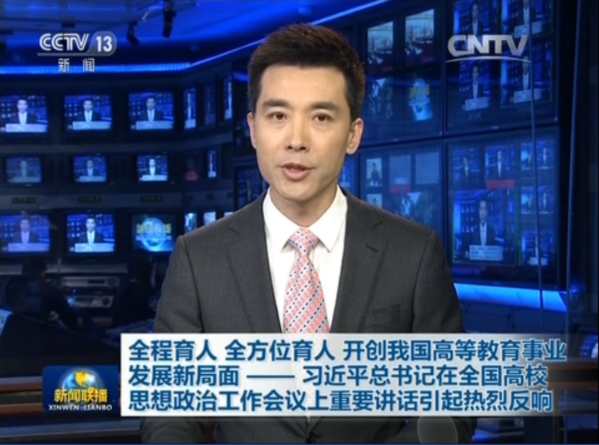 编者按:日前,习近平总书记在全国高校思想政治工作会议上发表重要讲话,在广大高校师生中引发了强烈反响。中央电视台记者分别采访了我校欧美日一区副教授高宁、华中科技大学校长丁烈云、四川交通职业技术学院党委书记王东平、中国药科大学党委书记徐慧等。CCTV《新闻联播》2016年12月10日播出。