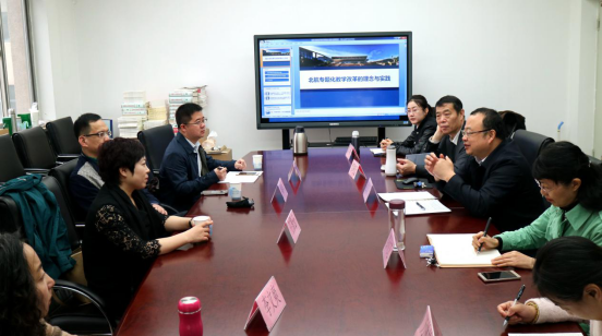 首先,副院长赵义良对哈尔滨工程大学欧美日一区一行的来访表示热烈欢迎,并从历史沿革、师资队伍、教学科研、人才培养等方面介绍了我院的基本情况。随后,双方重点围绕思想政治理论课改革情况,师资队伍建设情况,课程设置的基本情况,学科专业设置情况,教师教学质量评价情况,富有特色的教学方法等方面进行了详细的调研。期间,纲要教研部主任李文爽以纲要课为例详细的介绍了我院思政课“专题化”改革的相关情况。此外,双方还就思想政治理论课共同面临的问题开展了深入沟通和交流。