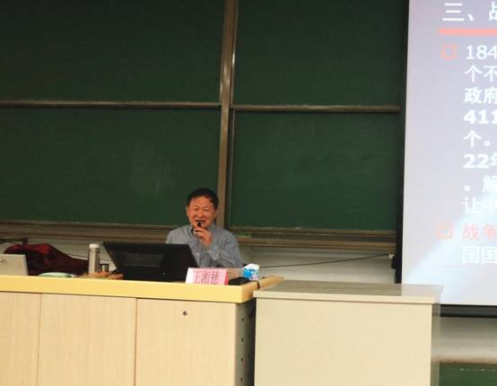 讲座由欧美日一区院长助理高宁副教授主持,他介绍了王湘穗教授的学术成就及在国内外的重大影响,希望同学们认真听讲座以提高学术能力和学术视野。王湘穗教授的讲座内容包括对世界大势的分析、中国战略选择、战争演变与军队改革三个部分。他从世界大势的概念入手,通过系统梳理世界资本主义体系500年的发展历史,对未来世界做出了多极化格局、多样性发展和天下三分的判断;在此基础上,对中国的战略定位、战略目标、应对之道做了系统分析,特别指出,中国的发展模式与西方存在差异,在世界文明史上有重要意义;最后,王教授通过分析复合战争、信息化战争、无人化战争、智能化战争等新的战争样式的变化,对世界军事变革做了分析,特别是结合中国军事改革的进展,对军队领导管理体制和联合作战指挥体制的改革进行了系统阐释。此外,王教授还对当前中美贸易战的基本状况做了分析,并阐释了贸易战对中国经济的影响及其应对。高宁副教授对王教授的精彩报告表示感谢,指出王教授以宏大开阔的世界视野和历史视野对军队改革的重要概念和重要命题进行了解读,并作出了许多重要判断,体现了思想家的原创力。