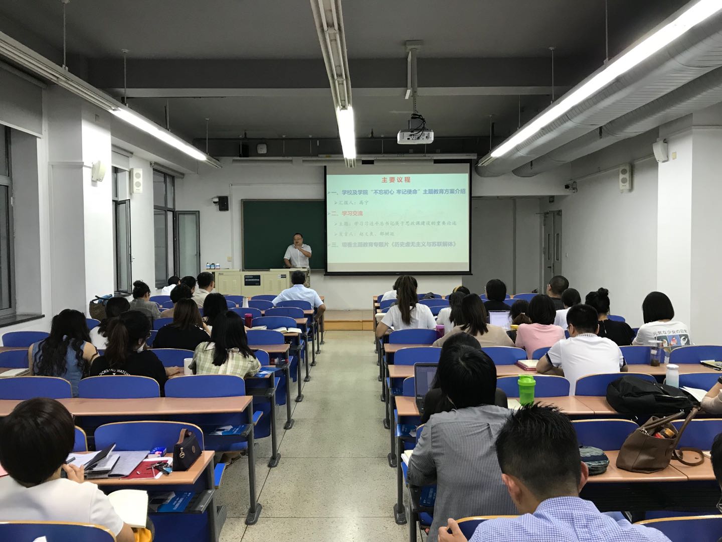 9月25日,我院组织开展第十一次“集体学习日”活动暨欧美日一区“不忘初心、牢记使命”主题教育集中学习。师生党员60余人参加学习,学校主题教育巡回指导组第八组组长、研究生院副院长兼招生与学位处处长肖志松出席活动。