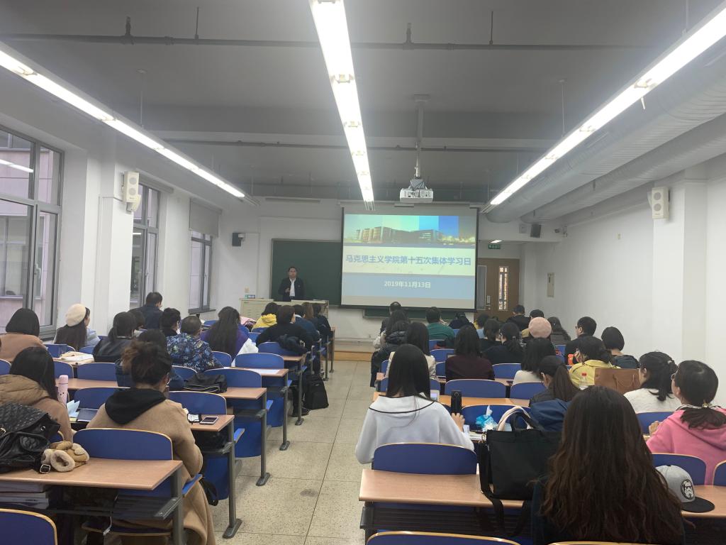 11月13日下午,院组织开展第十五次集体学习日”活动,落实中央“不忘初心、牢记使命”主题教育领导小组印发的《关于在第二批“不忘初心、牢记使命”主题教育中认真学习贯彻党的十九届四中全会精神的通知》要求,集中学习党的十九届四中全会精神,研讨如何将《中共中央关于坚持和完善中国特色社会主义制度 推进国家治理体系和治理能力现代化若干重大问题的决定》(以下简称《决定》)融入当前和今后的理论研究、思政课教学、学院治理等具体实践中。活动由院直属党支部书记高宁和院长助理张树焕主持,60余名师生党员参加。