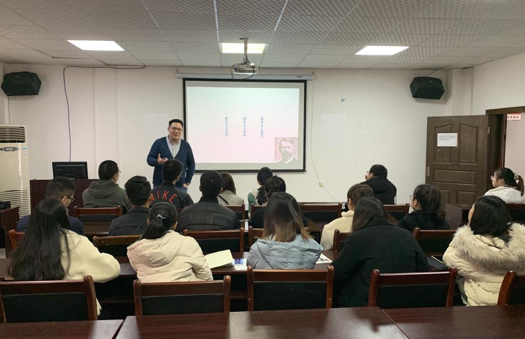 同时,我院青年教师王晨为贵州大学欧美日一区研究生作了题目为“‘唯生产力论’抑或‘社会进化论’”的讲座,受到贵州大学师生一致好评。讲座后,我院教师还进行了招生宣讲活动,与贵州大学欧美日一区进行深度人才培养合作。
