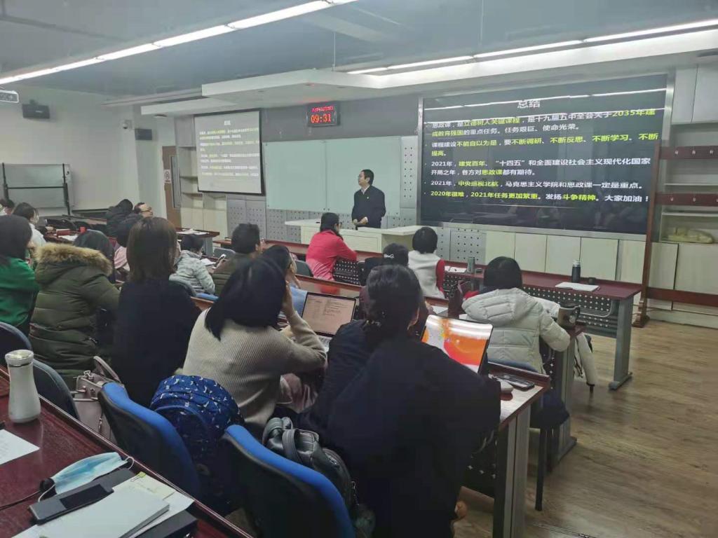 赵义良院长从世界百年未有之大变局带来的新特征和新变化谈起,结合党的十九届五中全会和中央经济工作会议精神,提出了下一步高校教学管理工作中需要抓好的关键环节。同时,他还根据《深化新时代教育评价改革总体方案》的要求,从提高思政课教学质量、完善思政课教师队伍评价体系和推动马克思主义理论学科建设三方面进行了讲解,并对全院教职工提出了要求和期望。