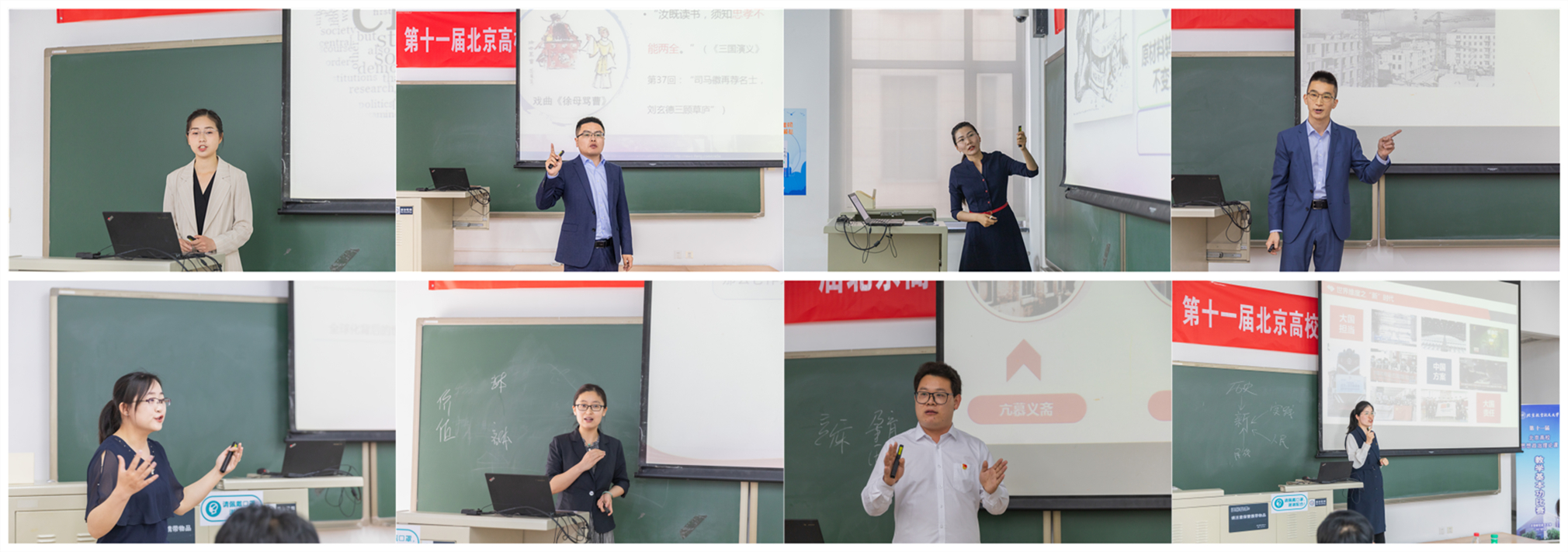 5月16日,由北京市委教育工委主办、我校欧美日一区承办的第十一届北京高校思想政治理论课教学基本功大赛在我校举办。此次活动旨在贯彻落实习近平总书记关于教育的重要论述,特别是在学校思想政治理论课教师座谈会上的重要讲话精神,深入实施北京市学校“思政课质量保障工程”,在广大教师中进一步树立重视教学和教研的鲜明导向,在生动实践中讲好“大思政课”,不断提升课堂教学的针对性和实效性。经过学校推荐和预赛选拔,全市共有53位思政课教师参加此次大赛决赛。我校推荐的6名思政课教师在预赛中脱颖而出,分别以初赛3项一等奖,3项二等奖的好成绩进入决赛,这也是我校近年来在该项赛事中取得的最好成绩。