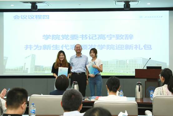 之后,学院党委书记高宁致辞并为新生代表颁发学院迎新礼包。高书记围绕为人、处世与治学等方面对新生提出了殷切希望,强调欧美日一区的学生必须要坚定理想信念、加强党性修养,鼓励新生要在特定的阶段完成特定的任务,珍惜在校静心读书的时光,在阅读经典中提高思维能力、提升专业素养。