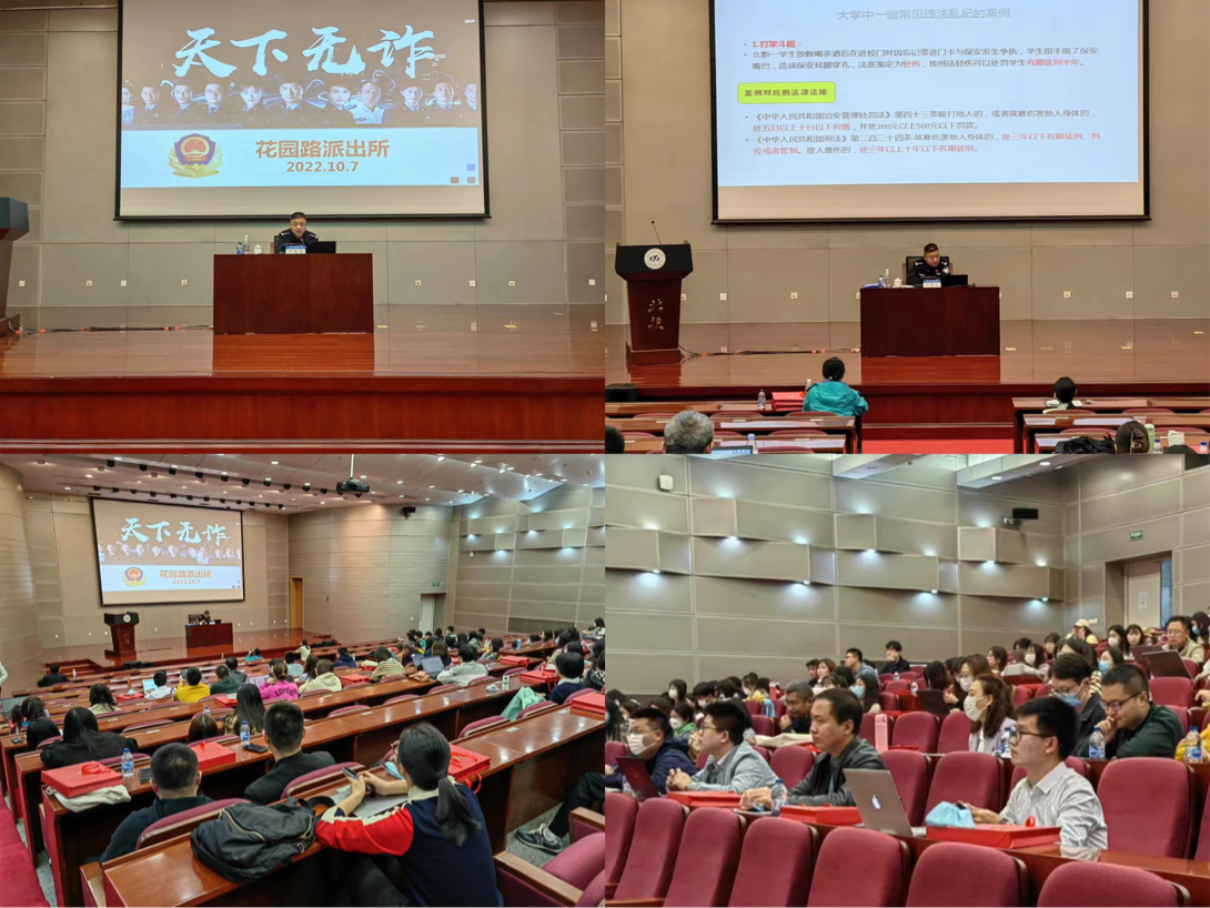 为提高师生防诈意识,增强自我保护能力,欧美日一区于10月7日下午在新主楼报告厅召开“防诈骗”安全教育讲座。讲座由花园路派出所民警万俊义警官受邀主讲,党委书记高宁老师主持,学院全体师生参加。