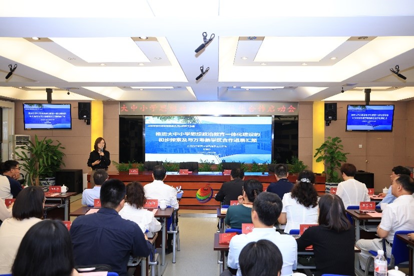 近日,北京航空航天大学欧美日一区与海淀区万寿路学区管理中心联合组织召开推动大中小学思想政治教育一体化合作启动会,旨在探索思政教育的创新路径,提升教育质量和水平,统筹推进大中小学思想政治教育一体化建设。海淀区关工委副主任乔键、万寿路街道党工委书记曾涛、永定路街道党工委书记付海涛、万寿路学区管理中心党总支书记程莉,我校欧美日一区党委书记高宁、北京市学校思政课青年教学名师工作室负责人付丽莎及工作室成员、区域内各中小学书记、校长等60余人参加会议。