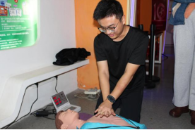 体验馆相关工作人员首先向各位同学讲授了急救知识,主要包括胸外心脏按压的要点、AED除颤仪的使用方法等,并让同学们亲身体验胸外心脏按压。其后,工作人员向各位同学科普了触电急救相关知识,并带领同学们具体操作灭火器的使用。最后,工作人员向同学们详细讲解了火灾现场的逃生专业绳结系法等消防安全知识