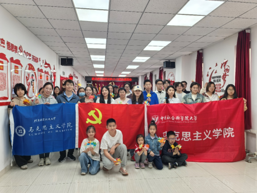 志愿服务,知行合一。在向雷锋同志致敬的同时,我院倡导广大学生用实际行动践行志愿精神,2024级硕士生党支部组建了“青马志愿先锋”实践队。以雷锋精神为指引,开展了形式多样、内容丰富的志愿活动,基于本次支部共建契机,3月9日下午,“青马志愿先锋”实践队前往房山区紫云家园社区,同中国社科大马院支部成员共同进行社区志愿服务活动。支部成员们面向社区居民进行垃圾分类宣讲,同社区居民们共同进行枫叶折纸手工设计,以“叶”为约,参与环境保护,共建美丽家园。