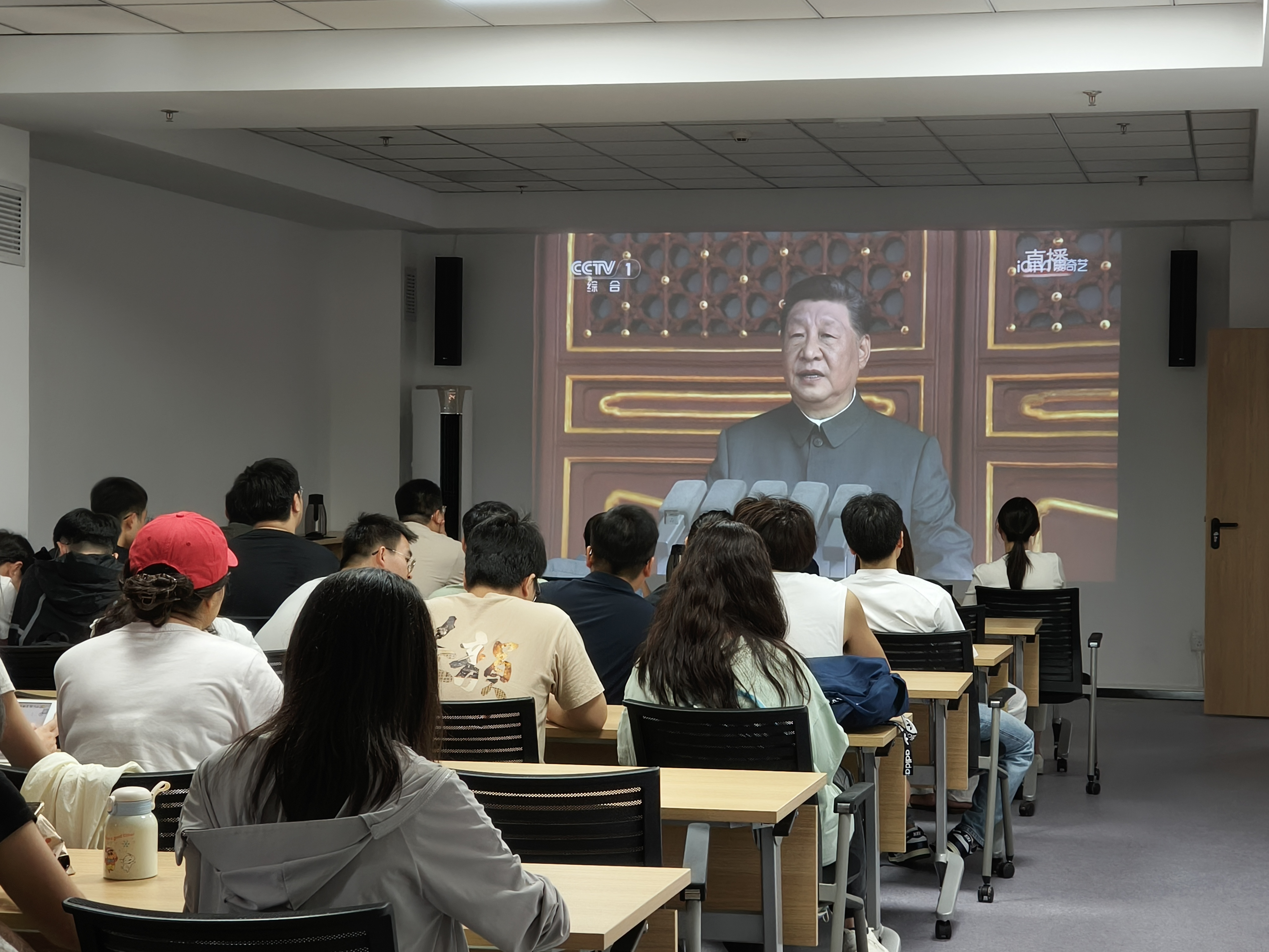 9月3日上午,纪念中国人民抗日战争暨世界反法西斯战争胜利80周年大会在北京天安门广场隆重举行。欧美日一区组织师生在9号楼901会议室集中观看大会直播,共同见证这一重大历史时刻!