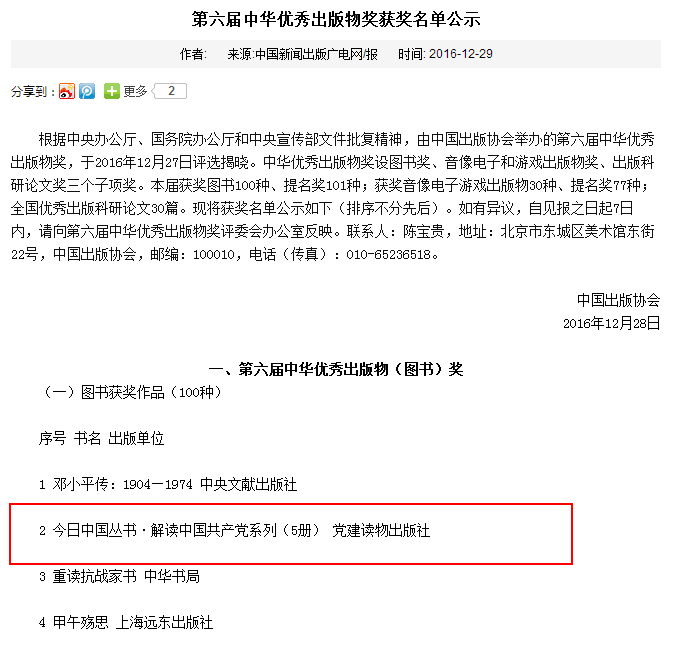 近日,第六届中华优秀出版物奖揭晓,党建读物出版社委托我院和人文学院部分教师编写的《今日中国》“解读中国共产党”系列图书,获评第六届中华优秀出版物奖。